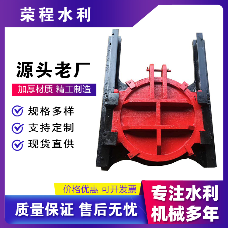 鑄鐵圓閘門具有耐腐蝕性,可在任何介質狀態下使用,有方型。圓型和深水高壓閘門,有單向,雙向止水或鑲銅止水,也可傾斜安裝,斜拉使用,具有止水效果好,安裝簡單使用壽命長特點。
