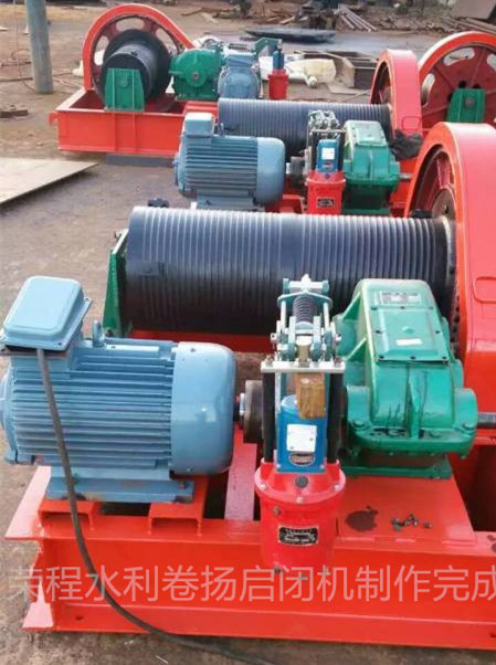 卷揚式啟閉機,是一種水利工程專用機械,廣泛用于水利工程閘門的啟閉,是農田灌溉水產養殖、農業經濟開發區、污水處理廠、水利發電站、水庫(水閘、堤壩、隧道、管 道)等進水、退水閘的配套機械,山區、平原有、無電地區均可使用。 該產品主要由電動機、聯軸器、傳動軸、減速器、交流制動器、開式齒輪、卷筒部分、滑輪系列部分、電器控制箱、負荷控制器、手搖器及機架組成。結構緊湊,承載能力大,運行平穩可靠,安裝維修方便,設計合理。