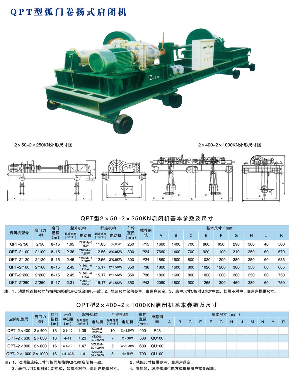 1、動滑輪鏈接尺寸與相同規格的QPQ型啟閉機一致;