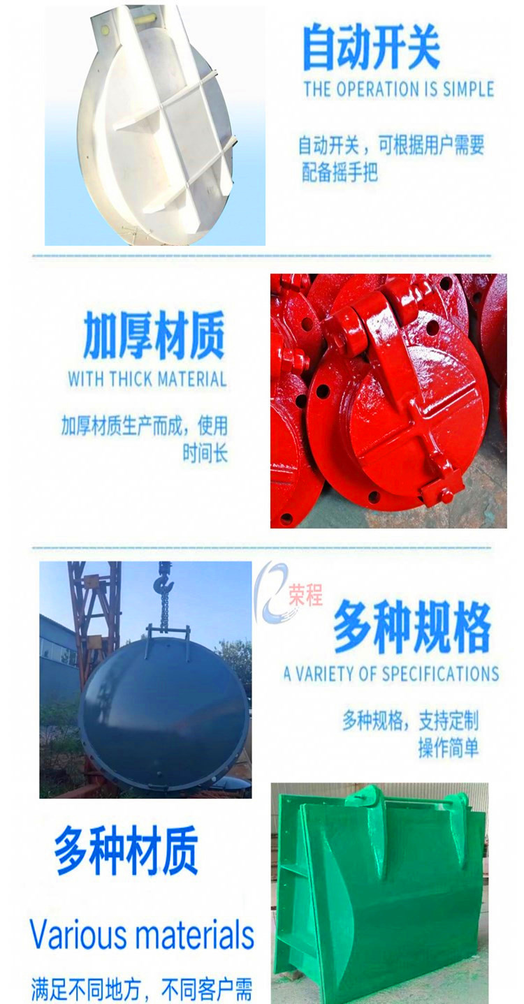 材質(zhì)分為不銹鋼、鑄鐵、型鋼、復(fù)合材料(玻璃鋼)等多種材料,拍門又分為很多種,比如,浮箱式拍門,平板式拍門,套筒式拍門側(cè)翻拍門等等,可以做成懸掛式,單開門,雙開門,節(jié)能型根據(jù)客戶需要鑄造合適材質(zhì)拍門,業(yè)務(wù)咨詢13582492022孫經(jīng)理,微信同號。